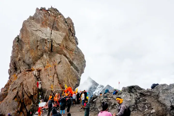 Shrikhand Mahadev Peak, also known as Shikhar Kailash, is a significant Hindu pilgrimage site located in the Nirmand sub-division of Kullu, Himachal Pradesh, India. It is revered as the home of Lord Shiva and Goddess Parvati. Shrikhand Mahadev Peak (Shikhar Kailash) in Kullu is part of the Panch Kailash, a group of five sacred peaks in the Himalayas, with Mount Kailash being the most famous. Shrikhand Mahadev is very tall, standing at 18,570 feet, and has a 75 feet tall naturally formed Shivalingam at its top.